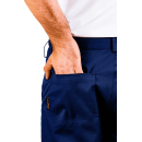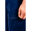 Пояс снабжен эластичной резинкой по бокам для точной адаптации под фигуру и семью прочными шлевками для широкого ремня. Застежка на молнию и пуговицу отличается повышенной надежностью. Уникальность кроя брюк заключается в специальных вытачках по боковым и шаговым швам в области колен. Такое решение создает необходимый объем, обеспечивая комфорт специалисту при работе в положении сидя или при частых наклонах.