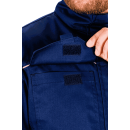 Модель оснащена воротником-стойкой, который придает образу строгость и защищает шею. Центральная застежка на надежную молнию дополнена ветрозащитным клапаном на потайных кнопках. Такое решение крайне важно при работе с оборудованием: планка полностью скрывает фурнитуру, исключая риск зацепов или повреждения обрабатываемых поверхностей. Одной из ключевых особенностей является наличие вентиляционных вставок из сетки в области подмышечных впадин, что гарантирует эффективный воздухообмен даже при выполнении тяжелых физических задач в жаркую погоду.