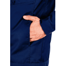 Для обеспечения пассивной безопасности на куртке предусмотрены световозвращающие канты, расположенные на кокетках полочки и спинки, а также на рукавах, что делает силуэт работника заметным в темное время суток.