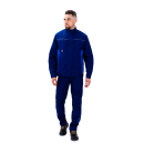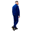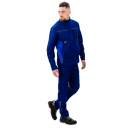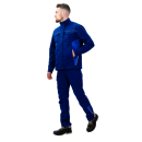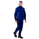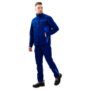 Куртка оснащена центральной застежкой на качественную молнию, которая закрыта ветрозащитной планкой. Это не только улучшает внешний вид изделия, но и предотвращает контакт фурнитуры с оборудованием или обрабатываемыми поверхностями. Воротник-стойка надежно защищает шею от ветра и пыли, придавая образу строгость и завершенность. Манжеты на рукавах позволяют регулировать обхват запястья, обеспечивая комфортное прилегание и предотвращая попадание загрязнений внутрь рукава.