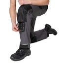 Усилительные элементы: объёмные наколенники с карманами для амортизационных накладок, наколенники с анатомическими вытачками; по низу брюк усилительные детали.