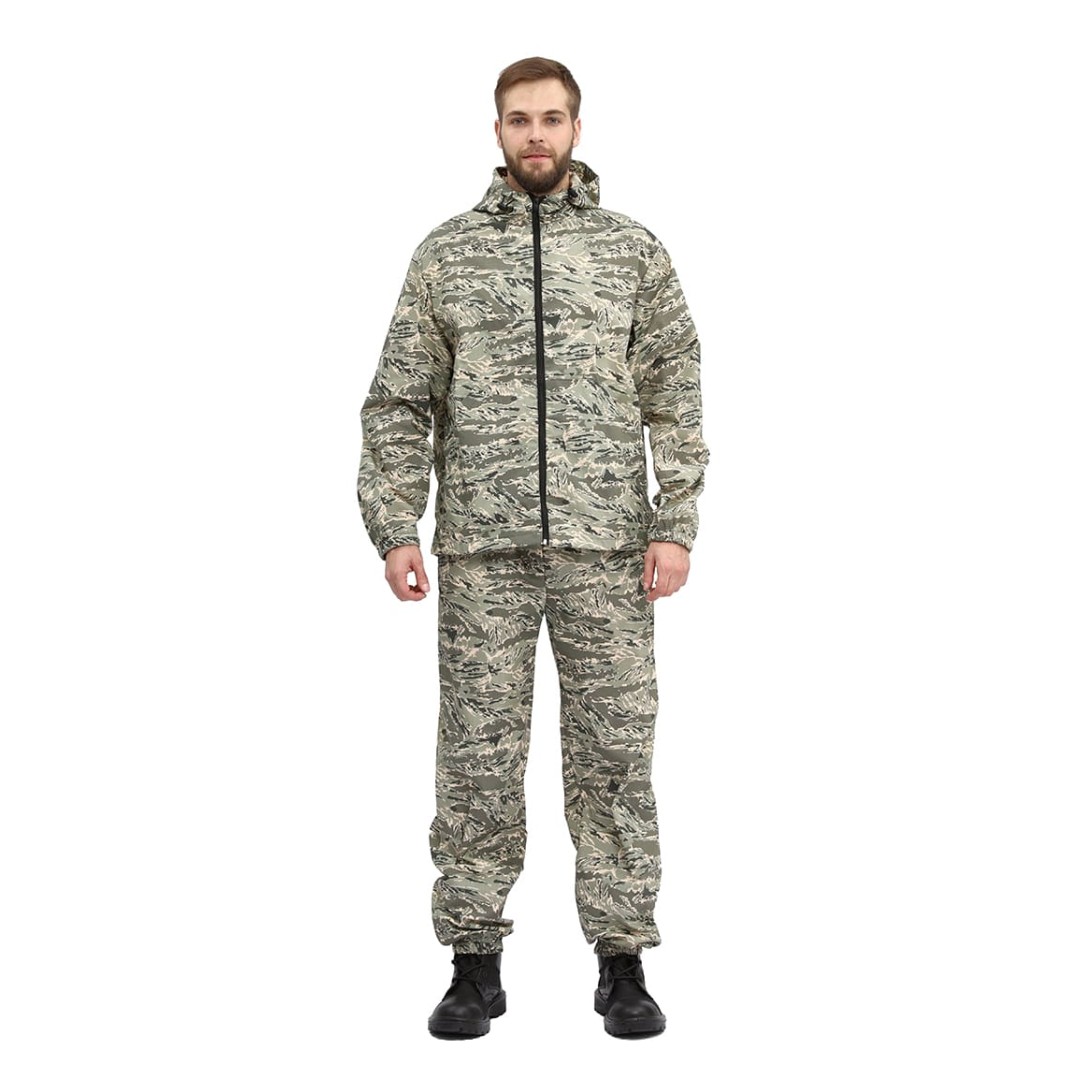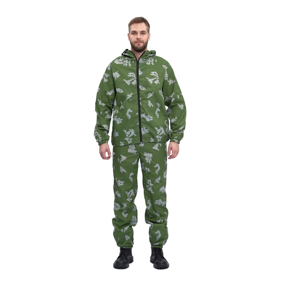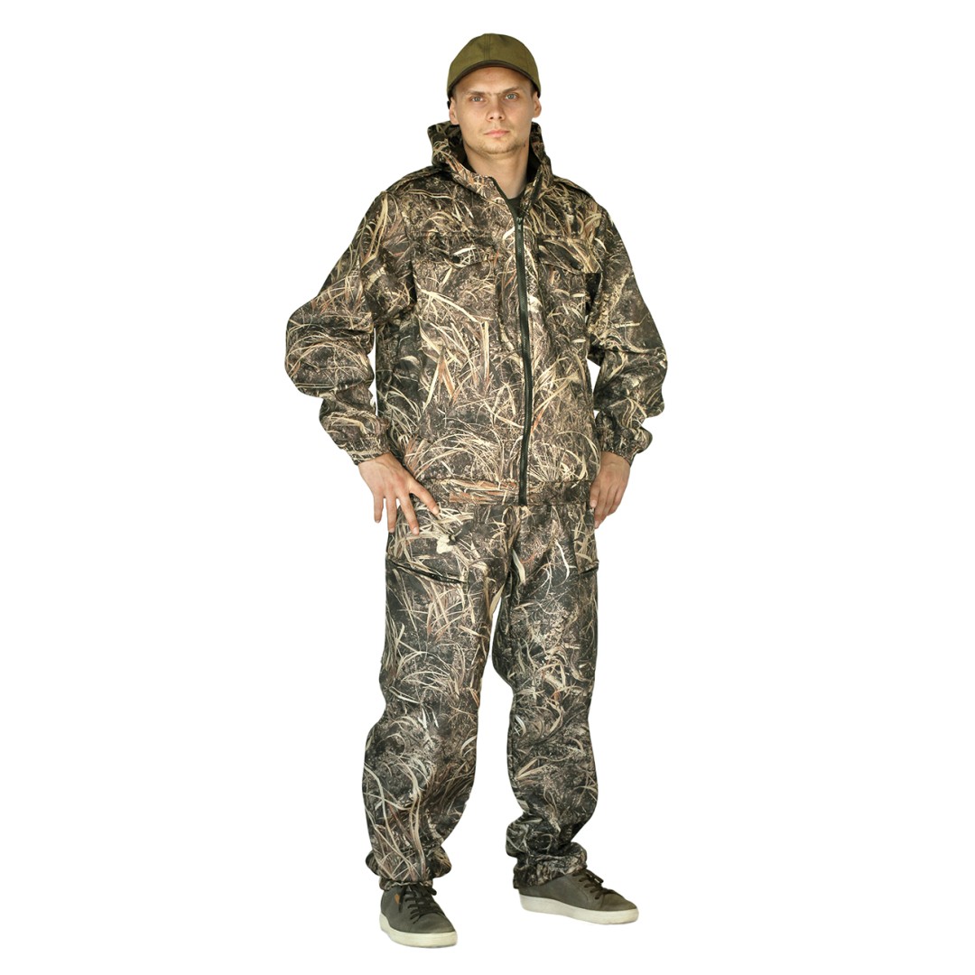 - Камуфлированные костюмы — варианты с принтами под лес, камыш, болотистую местность или снежный ландшафт, обеспечивающие маскировку.