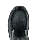 Верх сапог изготовлен из натуральной лицевой кожи толщиной 1.8–2.0 мм. Материал проходит специальную водоотталкивающую и маслобензостойкую обработку. Толстая кожа устойчива к порезам и разрывам, но при этом сохраняет способность «дышать». Конструкция голенища с регулируемым клапаном на пряжке позволяет плотно зафиксировать сапог на ноге, исключая попадание снега, грязи и искр внутрь. Светоотражающие элементы повышают видимость работника в темное время суток.