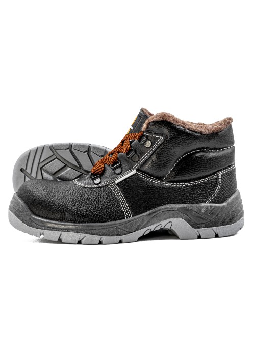 Зимние защитные ботинки на двухслойной ПУ/нитрильной подошве - отличный выбор для работников от сельского хозяйства до горно-металлургической промышленности. Обувь изготовлена из натуральной юфтевой кожи устойчивой к воздействию агрессивных внешних факторов. Ботинки утеплены шерстяным мехом, состоящим из натуральной и искусственной шерсти, что повышает устойчивость к низким температурам и истиранию. Носок защищен композитным подноском с ударной нагрузкой до 200 Дж. Подошва двухслойная из полиуретана + нитрила изготовлена литьевым методом, устойчива к воздействию кислотно-щелочных веществ (до 20%), масло-бензольных соединений и нефтепродуктов. Рабочая температура эксплуатации ботинок от -45°С до +300°С. Дополнительный комфорт и защиту от ударных нагрузок обеспечивают амортизатор в пяточной части ботинка и мягкий кант, защищающий голеностоп. Глухой клапан предотвращает попадание нетоксичной пыли, влаги и грязи внутрь