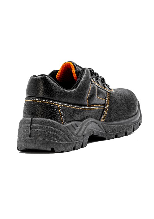 Защитные полуботинки на однослойной ПУ (полиуретановой) подошве изготовлены из натуральной юфтевой кожи устойчивой к воздействию агрессивных внешних факторов. Подошва изготовлена литьевым методом, что делает обувь водонепроницаемой, завышенная носочная и пяточная части создают защиту от ударных нагрузок. Подошва устойчива к воздействию кислотно-щелочных веществ (до 20%), масло-бензольных соединений и нефтепродуктов. Рабочая температура эксплуатации ботинок от -35°С до +85°С. Носок защищен металлическим подноском с ударной нагрузкой до 200 Дж. Глухой клапан предотвращает попадание нетоксичной пыли, влаги и грязи внутрь. Анатомическая стелька из ЭВА обеспечивает комфорт носки и снижает нагрузку на суставы ног. Подкладка из 3D AirMesh ткани обеспечивает здоровый микроклимат внутри ботинка