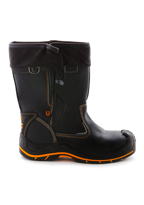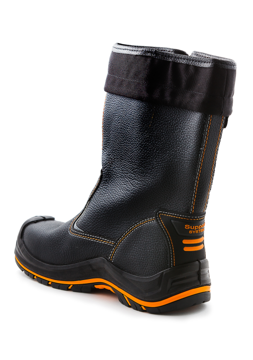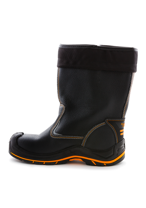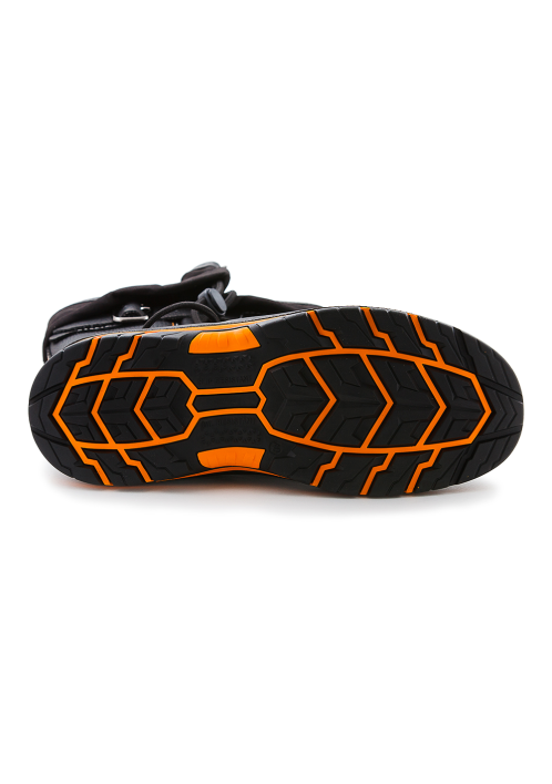 Подошва – двухслойная, устойчивая к воздействию нефти, нефтепродуктов, щелочей концентрации до 20%, повышенных температур. Верхний слой из полиуретана обладает амортизирующими свойствами, гасит ударные нагрузки, а также придает обуви легкость, комфортность и повышенные теплозащитные свойства. Ходовой слой изготовлен из износостойкой, термостойкой (+300°С / 60 с), морозостойкой резины на основе нитрильного каучука с улучшенным сопротивлением скольжению, стойкостью к деформациям, истиранию. Носочная часть имеет дополнительную защиту в виде полиуретановой накладки, предотвращающей механические повреждения обуви и препятствующей проникновению холода. Для защиты от ударов в носочной части стопы в обуви применяется композитный подносок (Мун 200), имеющий конфигурацию, препятствующую надавливанию верхнего края на стопу, и оборудованный прокладкой из полиуретана.