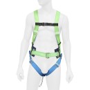 Состоит из привязи ремня с пряжкой, наплечных и набедренных лямок, кушака, двух D-колец на поясе (для удержания и позиционирования) и одного на спине и страховочного стропа из металлической цепи с амортизатором. Привязь упакована в водонепроницаемый пакет и содержит паспорт и инструкцию по применению.