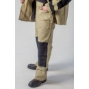 Брюки свободного прямого покроя с откидывающейся передней частью, застёжкой в боковых швах, с внутренними боковыми карманами. Вентиляционные отверстия в шаговом шве.