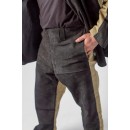 Брюки свободного прямого покроя с откидывающейся передней частью, застёжкой в боковых швах, с внутренними боковыми карманами. Вентиляционные отверстия в шаговом шве.