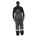 Полукомбинезон: прямого кроя, с притачной утеплённой подкладкой, с центральной застёжкой на двухзамковую молнию, закрытую планкой и косой вставкой по передним половинкам полукомбинезона. Бретели с застёжкой спереди на фастекс. Объём по линии талии регулируется с помощью кулиски с лентой эластичной. По низу брючин в боковых швах расположены разрезы, застегивающиеся на молнию. Ширина разреза регулируется вставкой из основной ткани. Молния закрыта утеплённой фигурной планкой с застёжкой на контактную ленту, которая дополнительно защищает от продувания.
