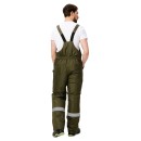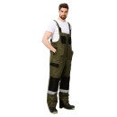 Высокая грудка с накладными карманами обеспечивает дополнительное утепление торса. Для удобства посадки по талии вшита эластичная тесьма, а бретели снабжены пряжками-фастексами и резинкой. Особое внимание уделено защите зон повышенного износа: наколенники усилены накладками из прочной отделочной ткани черного цвета. Это не только продлевает срок службы изделия, но и позволяет работать с упором на колени на влажных или абразивных поверхностях. Полукомбинезон также оснащен набедренным карманом с клапаном и специализированным карманом для инструментов сзади, что позволяет рационально разместить инвентарь.