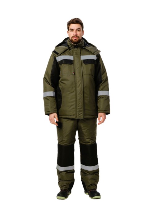 Цветовая гамма хаки/черный: такое исполнение делает костюм менее марким и позволяет использовать его в условиях, где важна не только заметность, но и маскировочные свойства или строгость корпоративного стиля.
