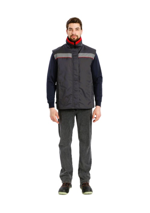 Темно-серый жилет с красной отделкой (арт. 87490222) — это универсальный элемент формы, востребованный во многих отраслях промышленности Санкт-Петербурга: