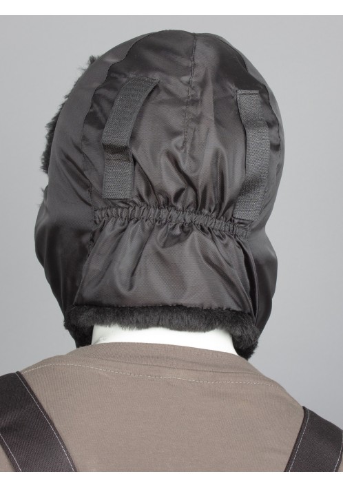 - предусмотрена возможность носки шапки под защитную каску и для этого есть фиксаторы креплений. Удлиненные ушки соединяются контактной лентой и защищают от ветра, подкладка из флиса обеспечивает термозащиту